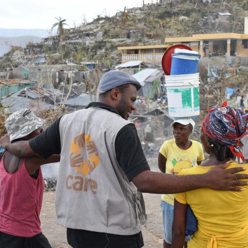 05.10.2016. "Nous devons faire vite!" Les équipes de CARE sur place distribuent de l'eau potable, de la nourriture et des biens tels des couvertures, des colis-CARE d'hygiène et des bâches plastiques.
